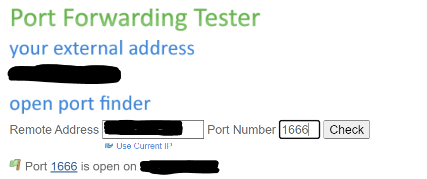 Port Forwarding Test : https://www.yougetsignal.com/tools/open-ports/